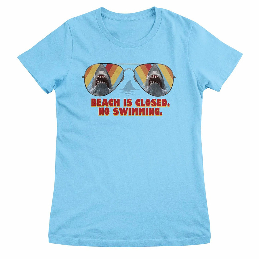 Čelisti tričko, Beach Closed Now Swimming Sky Blue, dámské
