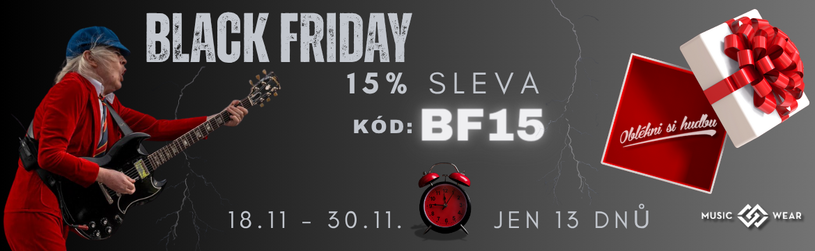 Chceš si pořídit nový merch výhodněji? Zadej kód BF15 při objednávce a získáš 15% slevu. Funguje to na skoro všechny kousky – jenom ne na zboží, co je už zlevněné, a taky ne na alkohol.